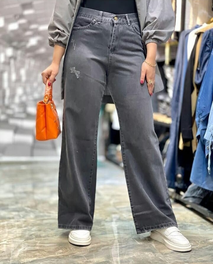 شلوار لی فول بگ زنانه پشت کش طوسی
