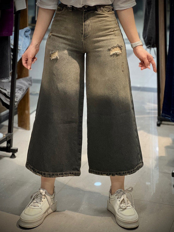 شلوار جین واید بگ قد ۹۰ زاپ دار زنانه