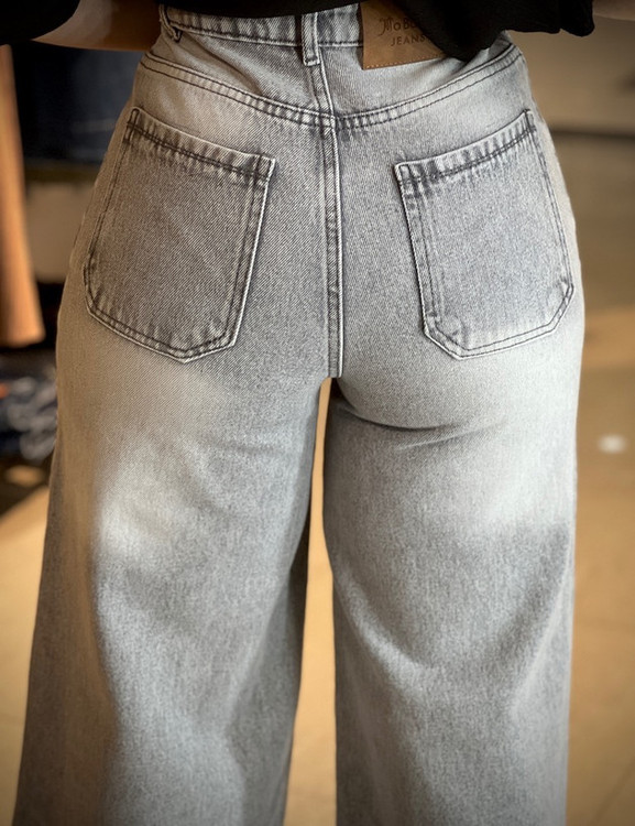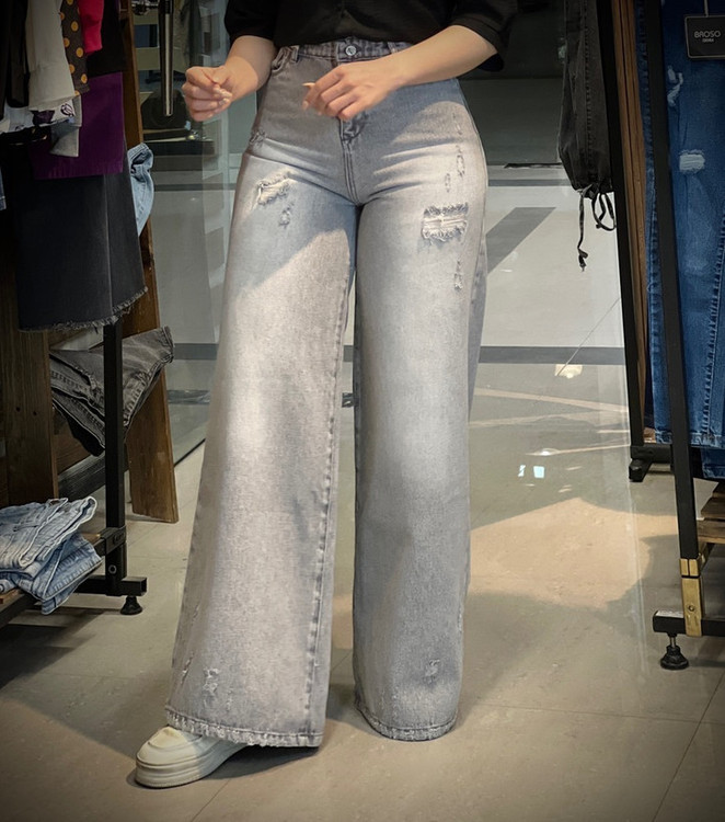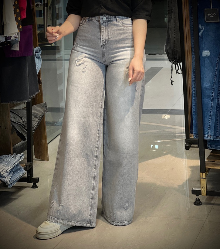 شلوار جین بگ طوسی روشن زاپ دار زنانه