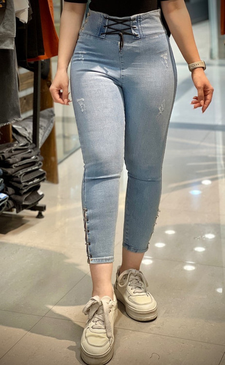 شلوار جین اسکینی زنانه مدل بغل دکمه فاق بلند