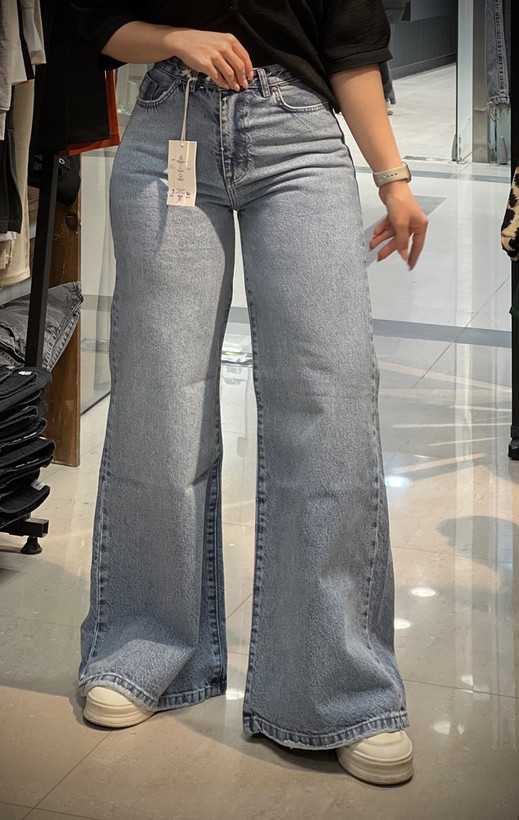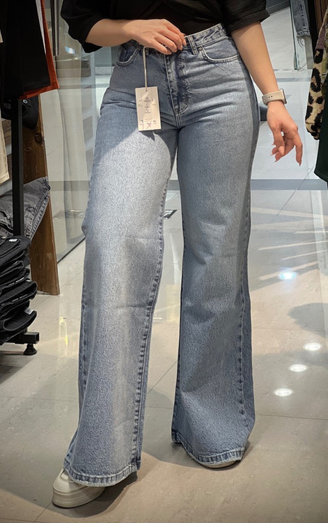 شلوار جین زنانه فلر بگ آبی یخی